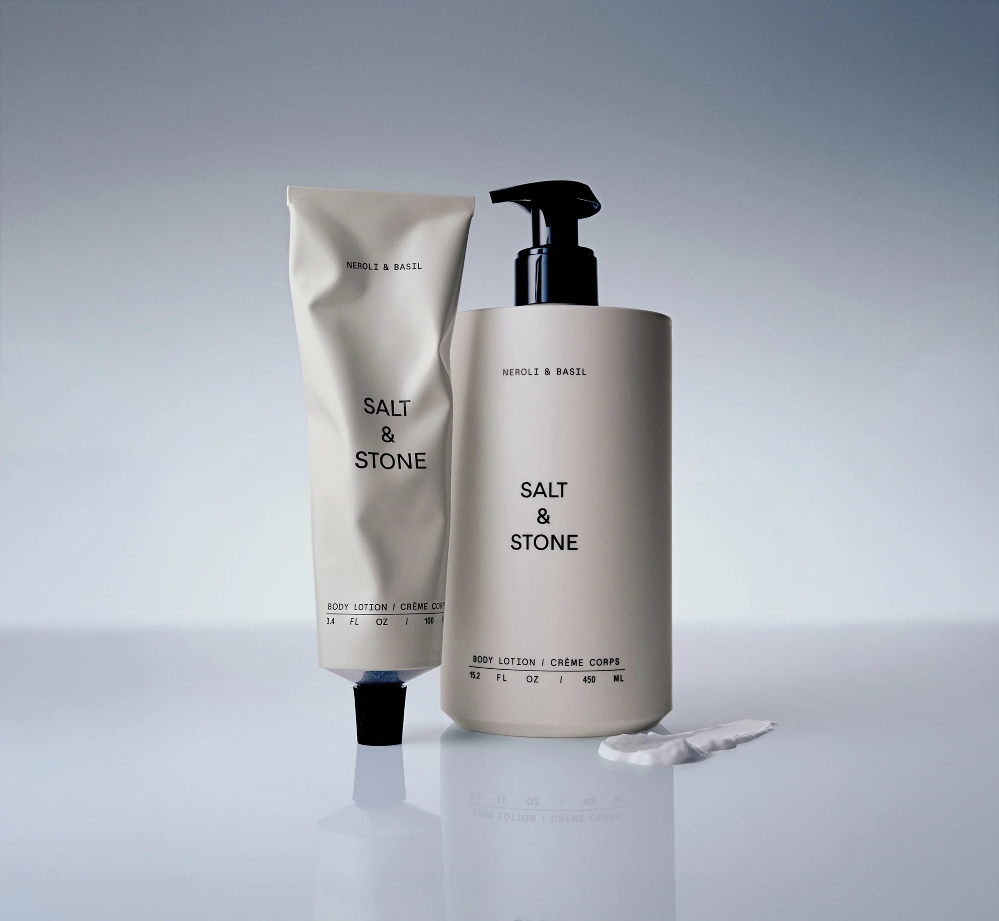 Głęboko nawilżający, szybko wchłaniający się balsam do ciała do codziennego użytku z bestsellerowej linii Neroli & Basil amerykańskiej marki Salt & Stone - teraz w domowym wydaniu 450ml z pompką! Zawiera ekstrakty z wodorostów i niacynamid, dostarczające skórze składniki odżywcze i pozostawiające ją jedwabiście miękką w dotyku, nawilżoną i gładką.