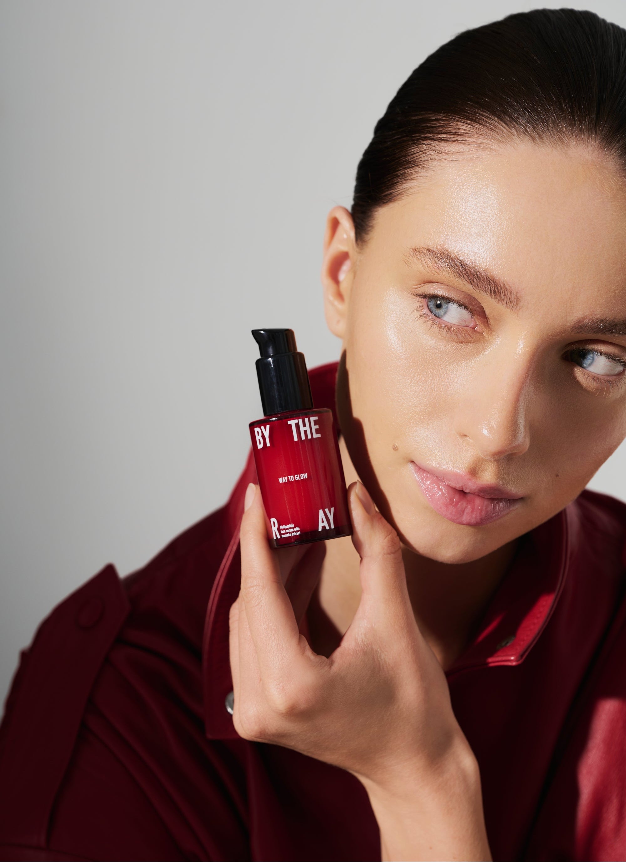 - Multipeptydowe serum do twarzy WAY TO GLOW 30 ml, w szklanek buteleczce z pompką.